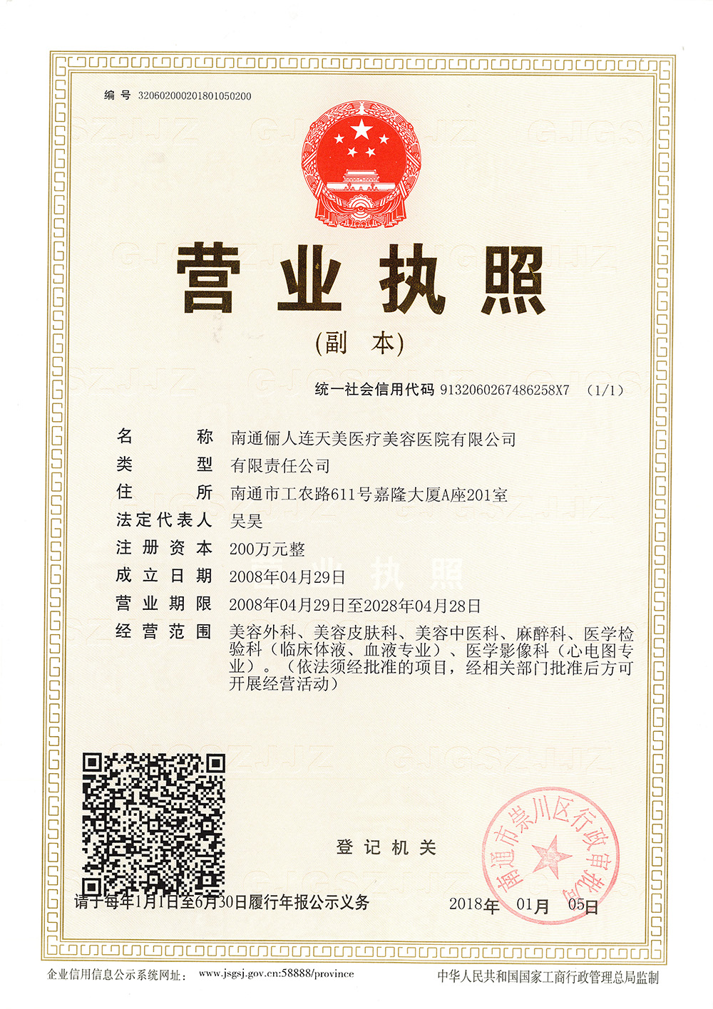 南通儷人連天美醫(yī)療美容醫(yī)院是與著名的醫(yī)療美容集團合作建立的醫(yī)院,醫(yī)院提供高品質的醫(yī)療美容服務。2008年,南通儷人連天美醫(yī)療美容醫(yī)院落戶南通,成為由南通衛(wèi)生局審批的專業(yè)醫(yī)療美容醫(yī)院。南通儷人連天美醫(yī)療美容醫(yī)院,特別設有專業(yè)的整形美容科、皮膚美容科和微創(chuàng)美容科三大科室,致力于為廣大求美者提供全方位的醫(yī)療美容服務。南通儷人連天美醫(yī)療美容醫(yī)院為求美者建立個人終生美麗檔案,一對一進行細致服務。 11年來,南通儷人連天美醫(yī)療美容醫(yī)院,不斷引進先進設備,不斷完善醫(yī)美技術,一批優(yōu)秀、專業(yè)而穩(wěn)定的醫(yī)生團隊,為無數求美者鑄就美麗夢想。